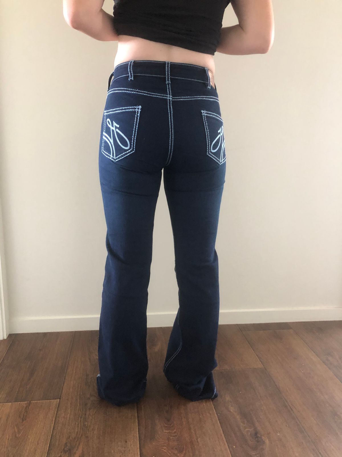 The high rise style is a very flattering cut that covers all the right places and sits up over the hips! The jeans are manufactured using 2% stretch denim for maximum comfort, but will not loose shape through the day. All pairs are boot cut.
