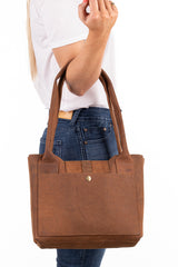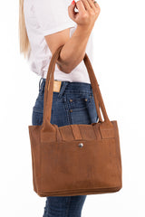 Pictured in Cognac, natural marks and wear in the leather ensures no two bags are the same. This leather will darken over time from contact with natural oils from your skin.
