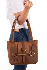 Quality brass or stainless steel hardware and buckles with a genuine bit as the feature on the bag. External press stud pocket, internal zippered pocket, mobile phone pouch and key attachment. Long hardy straps that are comfortable to carry over the shoulder or on the forearm.