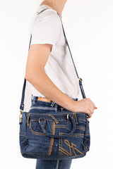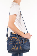 Short reinforced handles and a long denim shoulder strap means you can carry your bag with ease. Lined with custom embossed lining featuring the H&H logo. Single top zipper access. Zippered internal pockets along with two open end pockets for easy access to your phone and keys. This exclusive denim handbag also features four external open end pockets for stashing your favourite lippy for a quick touch up. All our zips are genuine YKK quality.