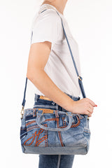 Designed by and exclusively produced for H&H, these limited edition denim handbags are thoughtfully crafted from our off-cut pieces.