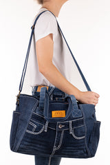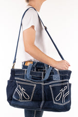 Constructed from up-cycled H&H jeans these nappy bags have a multitude of internal elasticised pockets and a seperate internal central zippered divider. All our zips are genuine YKK quality and the bags are fully lined with custom H&H lining. Open end pockets x 2 for quick access to your keys and phone. Long over the shoulder handles and a removable shoulder strap as standard. Throw over your shoulder or hook onto the handles of your pram to access the contents of the bag efficiently.