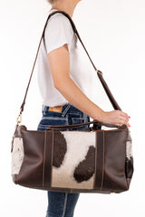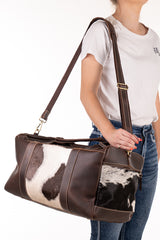 **Over time and with physical contact, the cow hide will show signs of wear. This is not a fault in the bag, but rather a natural process with every 'hide on' product.**