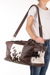 **Over time and with physical contact, the cow hide will show signs of wear. This is not a fault in the bag, but rather a natural process with every 'hide on' product.**