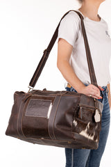 **Over time and with physical contact, the cow hide will show signs of wear. This is not a fault in the bag, but rather a natural process with every 'hide on' product.**