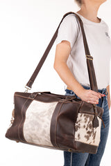 **Over time and with physical contact, the cow hide will show signs of wear. This is not a fault in the bag, but rather a natural process with every 'hide on' product.**