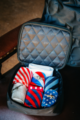 Suitable for home or competition use, this bag is perfect for so many applications. Hair accessories, make up, ties and stocks, plaiting gear, horse make up... there is no limit to what you can store in this bag! Custom H&H 1000D outer fabric with padded lining featuring the H&H logo. YKK zippers. Leather panel detail front of bag.