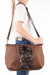 Designed by and exclusively produced for H&H, these limited edition hide and leather handbags are beautifully crafted from vintage tanned, dark tan cow leather and feature a hair-on panel.