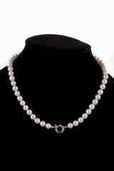 Cultured freshwater pearl necklace. 8-9mm pearls with 925 Sterling Sliver bolt clasp. Approx 18.5" in length including the clasp. Cream colour.