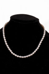 Cultured freshwater pearl necklace. 5.5mm rice pearls with 925 Sterling Sliver bolt clasp. Approx 18.5" in length including the clasp. Cream colour.
