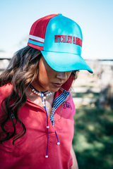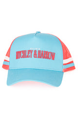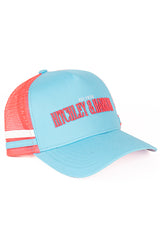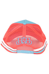 Another NEW trucker cap for your collection! Watermelon coloured mesh and aqua cotton drill front panel and peak featuring watermelon and white embroidery. H&H logo under the peak. Aqua plastic snap closure at the back. Limited edition colour release.