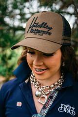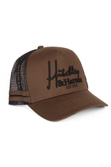 Another NEW trucker cap for your collection! Black coloured mesh and khaki cotton drill front panel and peak featuring black embroidery. H&H logo under the peak. Khaki plastic snap closure at the back. Limited edition colour release.