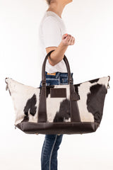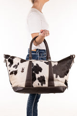 **Over time and with physical contact, the cow hide will show signs of wear. This is not a fault in the bag, but rather a natural process with every 'hide on' product.