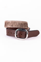 Handcrafted in Australia, our hide on Rancher belts are hard wearing and well made. Each featuring a different hide design, no two belts are the same. Quality brass or silver buckles in an oval or square design. Australian tanned leather trim. 40mm width.