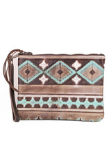 Clutch - White Aztec detail Leather Clutch #01