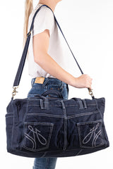 Long denim strap with an adjustable buckle for extra length, backed with webbing for extra strength. Short, double denim layered handles for an easy throw over the shoulder. This denim exclusive includes six open end, external pockets and one zippered internal pocket for extra storage. Double access top zippers. All our zips are genuine YKK quality.
