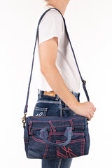 Short reinforced handles and a long denim shoulder strap means you can carry your bag with ease. Lined with custom embossed lining featuring the H&H logo. Single top zipper access. Zippered internal pockets along with two open end pockets for easy access to your phone and keys. This exclusive denim handbag also features four external open end pockets for stashing your favourite lippy for a quick touch up. All our zips are genuine YKK quality.