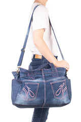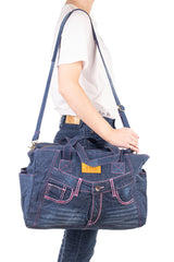 Constructed from up-cycled H&H jeans these nappy bags have a multitude of internal elasticised pockets and a seperate internal central zippered divider. All our zips are genuine YKK quality and the bags are fully lined with custom H&H lining. Open end pockets x 2 for quick access to your keys and phone. Long over the shoulder handles and a removable shoulder strap as standard. Throw over your shoulder or hook onto the handles of your pram to access the contents of the bag efficiently.