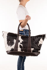 **Over time and with physical contact, the cow hide will show signs of wear. This is not a fault in the bag, but rather a natural process with every 'hide on' product.