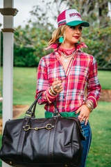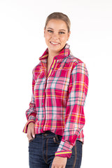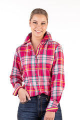 Fitted - RR01-2003 Hot Pink, Yellow, & Green Check Collared Ranch Range Arena Shirt