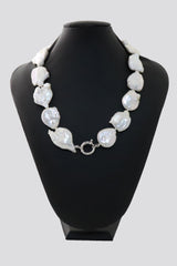 Cultured freshwater baroque square/round necklace. Extra, extra large 19-20mm baroque pearl necklace with 925 Sterling Sliver Euro bolt clasp. Approx 19 1/4" in length including the clasp. These pearls are an absolute standout feature piece that will be the envy of many! Cream colour with excellent lustre.