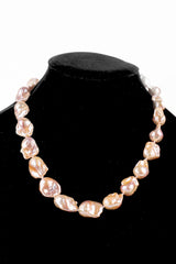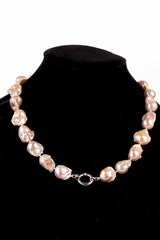 Cultured freshwater baroque pearl necklace. Large sizes 14-16mm baroque pearl necklace with 925 Sterling Sliver Euro bolt clasp. Approx 20.5" in length including the clasp. These pearls are an absolute standout feature piece that will be the envy of many! Pink colour with excellent lustre.