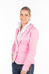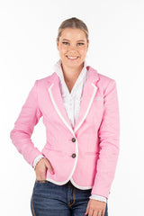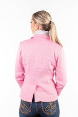 Looking for a classic, timeless and super classy blazer? Look no further than the H&H Autumn 100% linen blazer in baby pink. Fully stretch lined with statement white trims, this jacket is a classic for work or play. Embossed buttons front and cuff. H&H badging left front. Single vent at the back of the jacket.