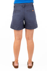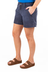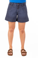 Your favourite denim shorts in a dark wash! Offered in two lengths, these shorts are stylish and comfortable. Able to be dressed up or kept super casual, these are an absolute 'must have' for the warmer months. Double belt loops and back welt pockets. Stretch denim. Darker denim with self blue coloured stitching. DS-5 are the longer length.