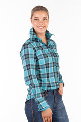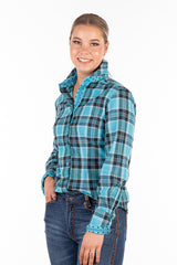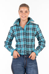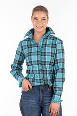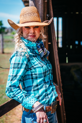 Our collared Arena shirt is a classic style with unmistakable H&H fit and finishings. The shirt is manufactured from an absolute statement detailed check featuring rich tones of turquoise, black and white. The cuffs and placket are trimmed with a custom printed turquoise and black polka dot fabric and finished with a turquoise and white grosgrain ribbon. Longer sleeve and body allowance for a perfect fit. Full button though garment with 5", 4 button cuff. 100% Lightweight non stretch cotton fabric.