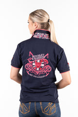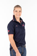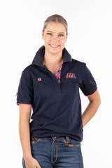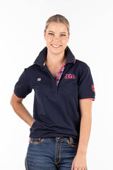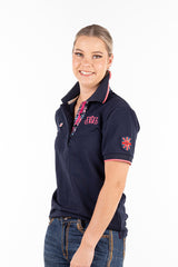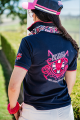 Another super comfortable all year round option from H&H, this new release, loose fitting polo is offered in a classic navy base fabric with a navy and pink floral contrast fabric. The back design features an embroidered H&H polo stick logo. Custom woven collar, cuffs and embellishments. Cut on a straight side seam, the EL polo range offers more generous patterning for ultimate comfort. High quality, 300g stretch french terry fabric.