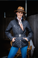 Back by popular demand, the original classic H&H quilted jacket is offered in chocolate and black for 2026. A timeless design, the jacket features a custom quilted outer fabric, eco fill and a silk slip lining. The cuffs are able to be adjusted with a buckle and the collar is a thick, woven, ribbed cotton to keep the sneaky breezes out! Double vented back for ease of movement. The waist belt is elasticised and the jacket may be work with or without the belt. Central clip fastening. Side pockets x 2 and a slimline internal pocket x 1. The jacket is secured by a front YKK zip and studs. Internal gold hang chain.