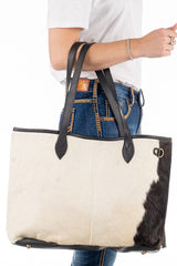 Both beautiful and incredibly functional, this tote will be a timeless investment in your day to day collection for years to come. Hide and leather swing tags. Embossed H&H logo.