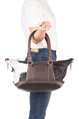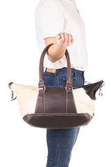 **Over time and with physical contact, the cow hide will show signs of wear. This is not a fault in the bag, but rather a natural process with every 'hide on' product.**