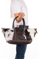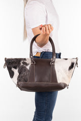 **Over time and with physical contact, the cow hide will show signs of wear. This is not a fault in the bag, but rather a natural process with every 'hide on' product.**