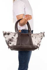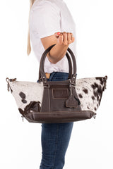 **Over time and with physical contact, the cow hide will show signs of wear. This is not a fault in the bag, but rather a natural process with every 'hide on' product.**