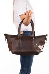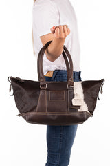 **Over time and with physical contact, the cow hide will show signs of wear. This is not a fault in the bag, but rather a natural process with every 'hide on' product.**