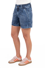 Your favourite denim shorts in an acid stone wash! Available in the longer DS5 style, these shorts are stylish and comfortable. Able to be dressed up or kept super casual, these are an absolute 'must have' for the warmer months. Double belt loops and back welt pockets. Stretch denim. Acid stone wash denim with self blue coloured stitching. DS-5 are the longer length.