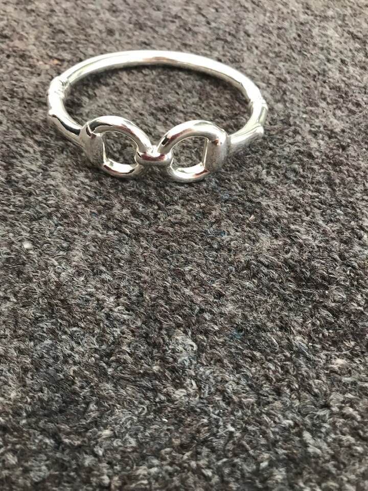 Snaffle bit feature 925 hollow hinged bangle. Stamped 925 and H&H. Oval shaped for maximum comfort. Smooth inner and hammered outer. A s... Read more