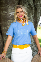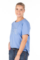 Manufactured from a 180gsm super comfortable stretch cotton, our classic T's are your easiest wearing piece! A relaxed cut for the ultimate in comfort. Applique contrast fabric logo centre front chest featuring self colour stitching, ribbon bow and coin embellishment. Longer body allowance and relaxed fit. Offered in sizes 6-24.