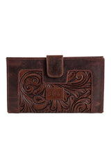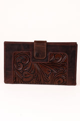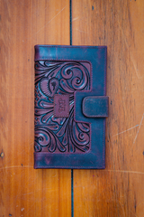 A great everyday option custom leather wallet designed by and made exclusively for Hitchley and Harrow. Crafted from buffalo leather and featuring the most beautifully detailed hand tooled panels, this wallet is extremely durable and will last for years to come. Fastened with a single stud clip. H&H Branding and custom H&H lining. One clear facing slot for a photo. Twelve card spaces. Two zippered section and four open top sections for documents or cash. Genuine YKK zips.