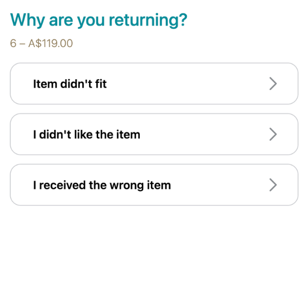Once you have selected your alternate item/s*, you will be prompted to pay a handling fee which is your postage to return the item to us. The system will generate a shipping label which you can attach to your retun parcel (any plain bag/satchel) and take to a post office to lodge. Once your exchange is complete at H&H, we will post the new item/s out at no cost! (For Australian Domestic returens only.)