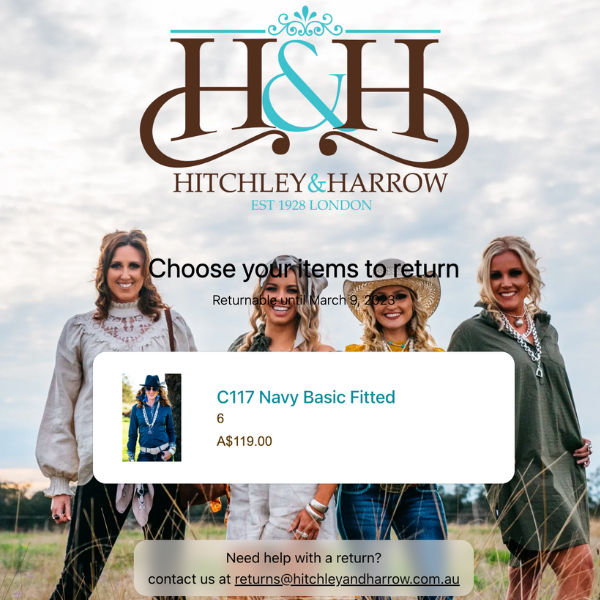 Once you have submitted a request for a store credit, please post the item/s back to us at H&H where they will be receipted and inspected and your store credit issued.