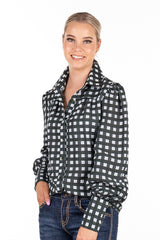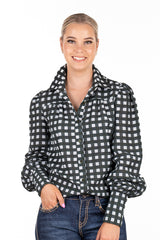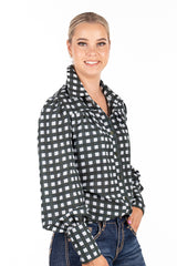 Classic and timeless, this dark khaki gingham check linen gathered detail shirt is perfectly at home with tailored pants or jeans. Custom printed for H&H on a butter... Read more