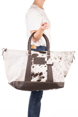 **Over time and with physical contact, the cow hide will show signs of wear. This is not a fault in the bag, but rather a natural process with every 'hide on' product.