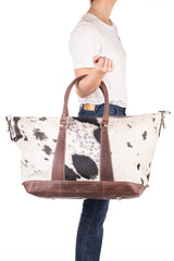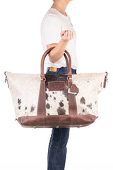 **Over time and with physical contact, the cow hide will show signs of wear. This is not a fault in the bag, but rather a natural process with every 'hide on' product.